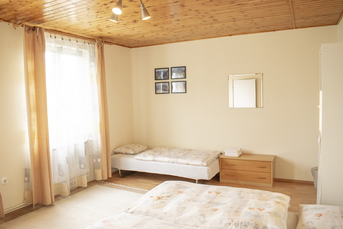 A főépület emeletén, 4 vendégszoba található, amelyek 3-5 ágyasak, mindegyik szoba saját fürdőszobával és WC-vel rendelkezik.